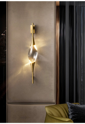 Modern Light Luxury Bedroom Bedside Wall Lamp Living Room TV Wall Corridor Hotel Creative Decor Full Copper Crystal Wall Lamp
