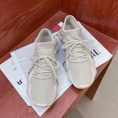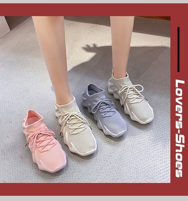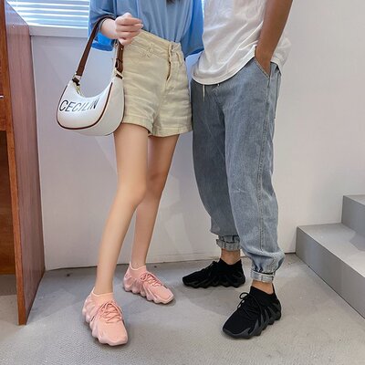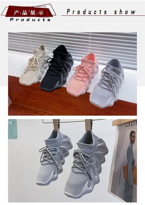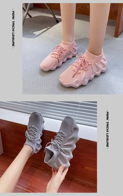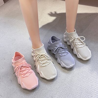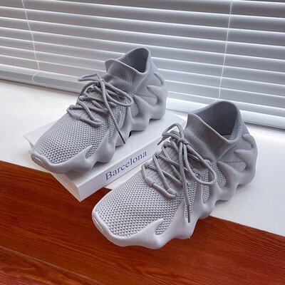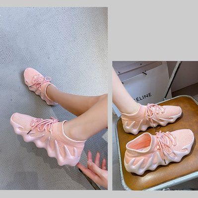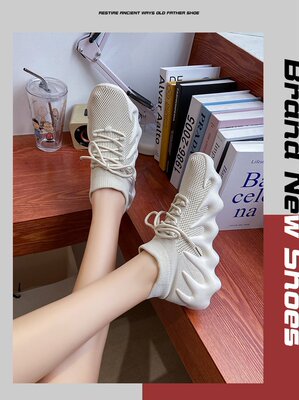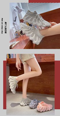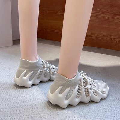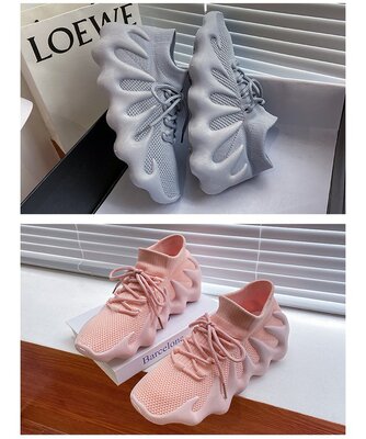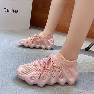 2024 Spring New Korean Style Fashion Knit Octopus Sports Shoes with Thick Soles for Women, Volcano Coconut Pattern, Wholesale