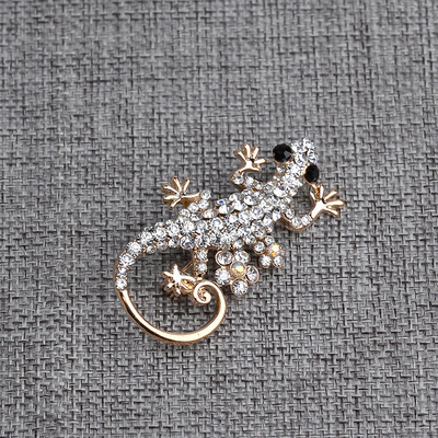 European and American Fashion Versatile Brooch, Cute Diamond-embellished Lizard Brooch for Long Dresses and Open-front Tops, Factory Direct Sale