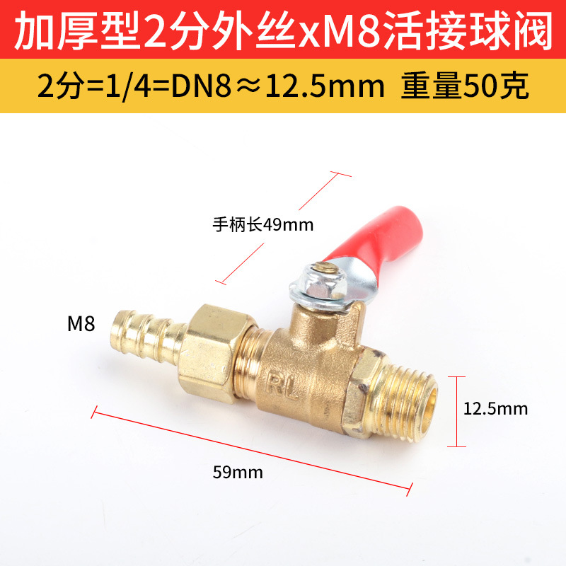 Specifications and models: 1/4*M8 thickened free ball valve 50g
