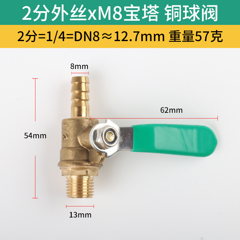 Thickened full copper ball valve 2 minutes inner wire*M8 pagoda