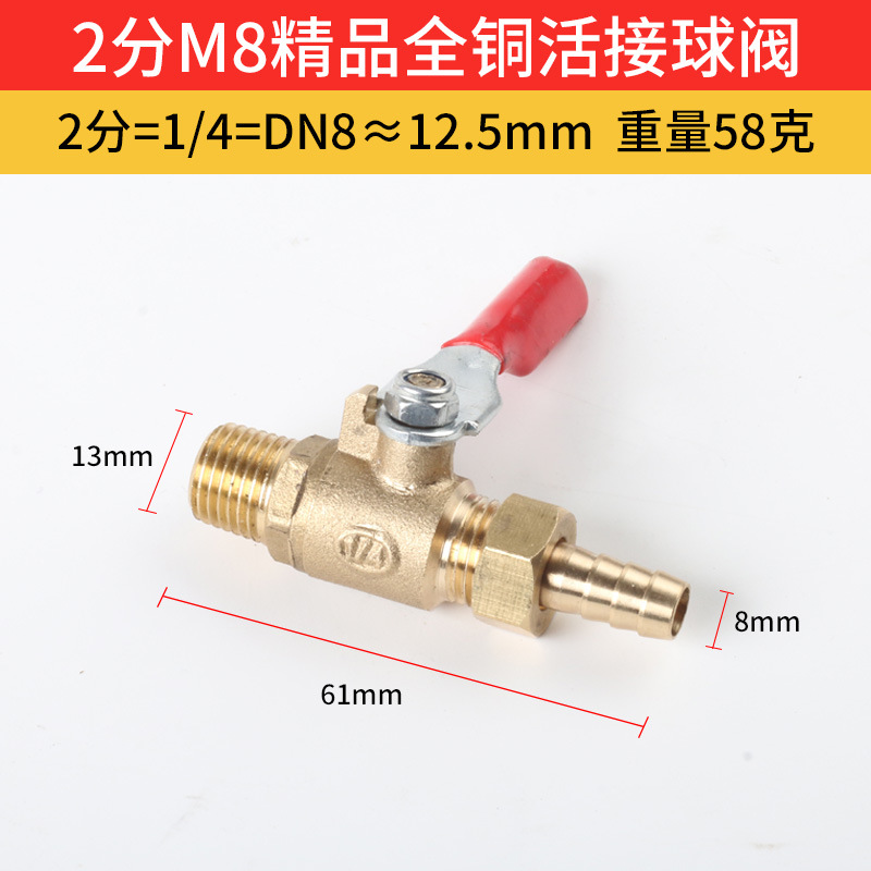 1/4*M8 high-quality all-copper live ball valve 58 grams