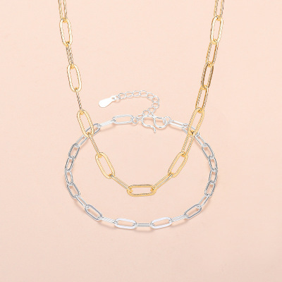 Factory Wholesale Gold and Silver Plated O-Ring Necklace for Women, Fresh and Minimalist Creative Long O-Ring Bracelet DIY Compatible Chain Foreign Trade Accessory