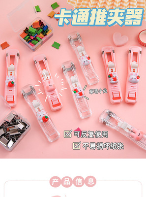 Korean-inspired Instagram-style cute cartoon rabbit push clip for student documents, archives, replaceable core binding clips