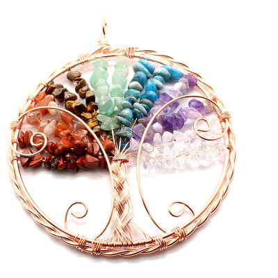 Cross-border jewelry wholesale European and American crystal crushed craft rose gold life tree car ornament aquamarine jewelry