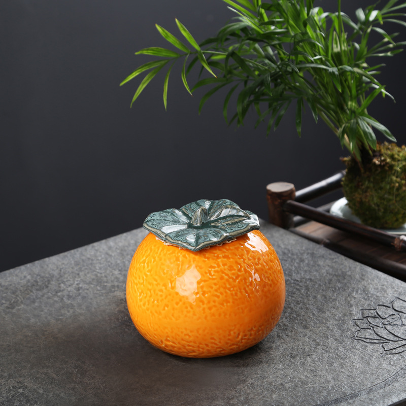 陶瓷大吉大利桔子茶葉罐仿真水果密封罐草莓糖果罐婚慶伴手禮批發