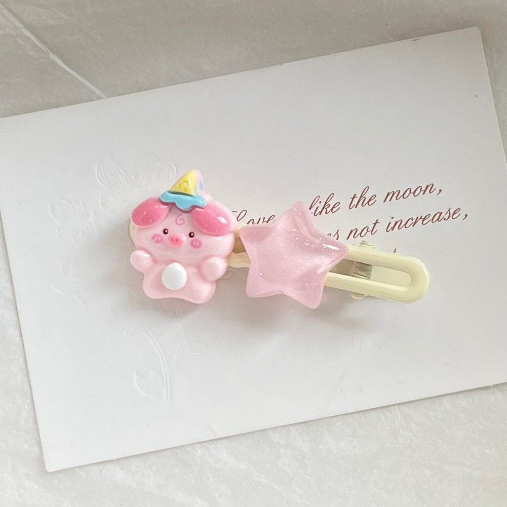 生日小豬星星邊夾少女甜美軟萌卡通髮夾ins可愛學生豬豬髮飾發卡
