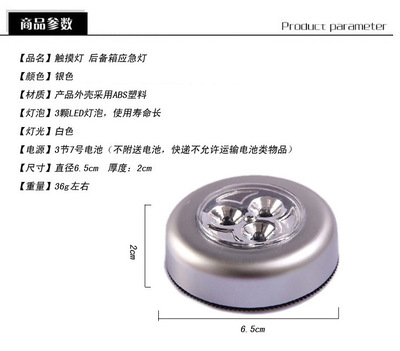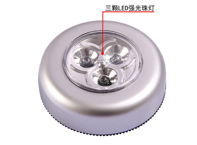 Creative round touch light 3LED push light, car pat light, car night light, adhesive wardrobe reading light