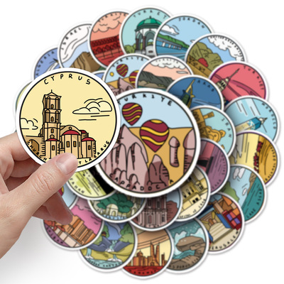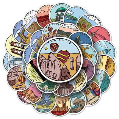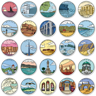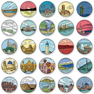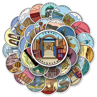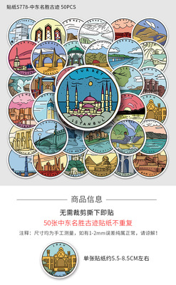 50 sheets of original outdoor travel doodle notebooks, handbooks, and decorative water-resistant cartoon stickers of famous historical sites in the Middle East