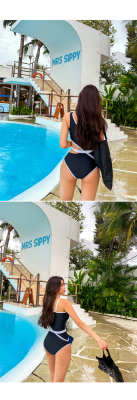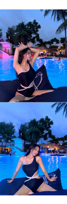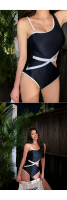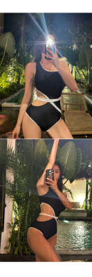 New Black Strappy Sexy Triangle Swimwear, Bandage Waist Cincher, Tummy Control, Slimming One-Piece Swim Suit for Hot Springs