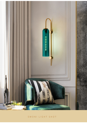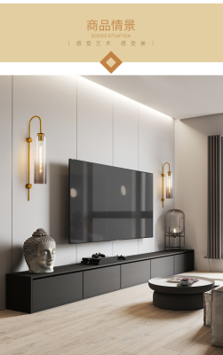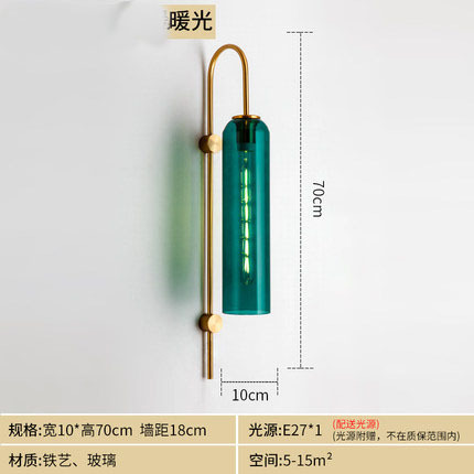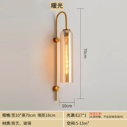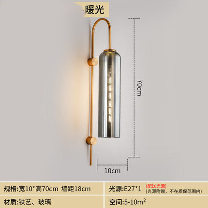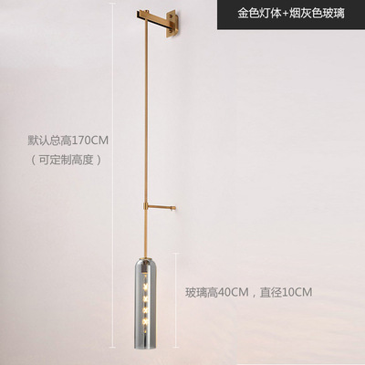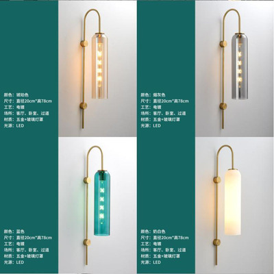 Nordic light luxury glass bedside wall lamp, modern minimalist hotel exhibition hall corridor villa background wall tall pole suspension wall lamp