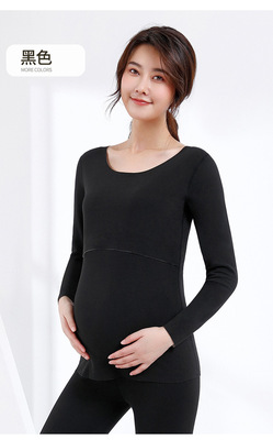 One-piece heat-resistant Deerskin invisible maternity warm innerwear with extra padding for nursing, suitable for autumn, includes top and bottom, nursing-friendly.