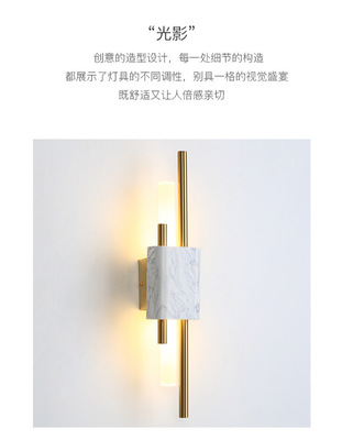 Modern Minimalist Living Room Background Wall Lamp, Hotel Lobby Corridor Marble Bedroom Bedside Full Copper Wall Lamp
