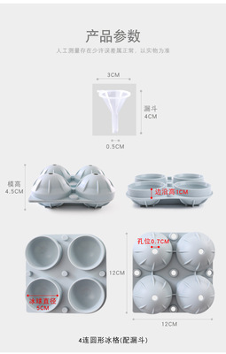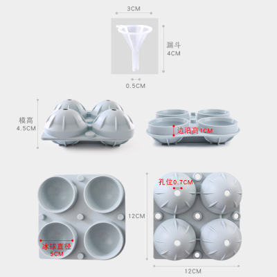 4-in-a-row circular ice cube tray (with funnel)