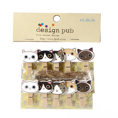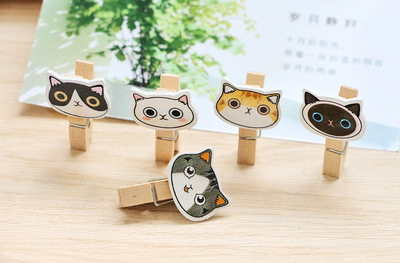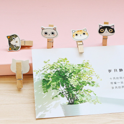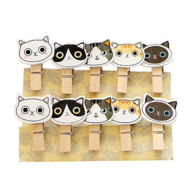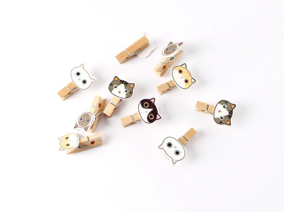 Cute cartoon photo wood small clip, abstract new kitten head, home decor, Chinese-style hanging ornament, fish, insects, birds, and animals
