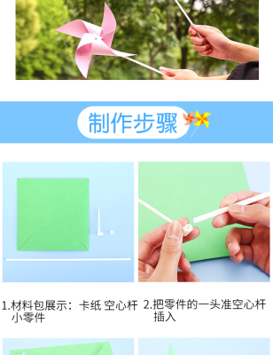 DIY windmill making handmade materials Kindergarten children’s outdoor decorative toys homemade material package colorful paper