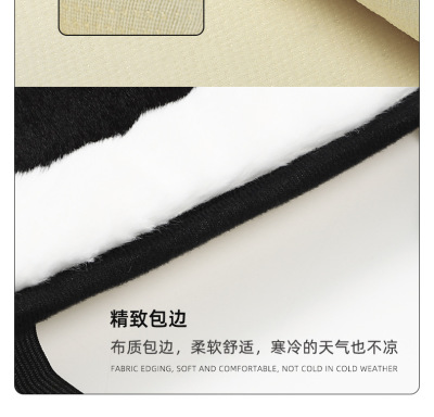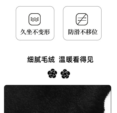 Rabbit fur white edge cushion with embroidered camellia backrest