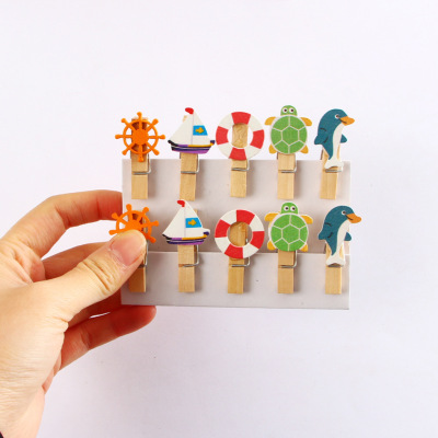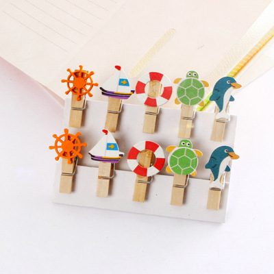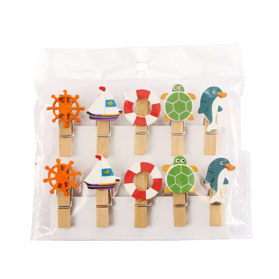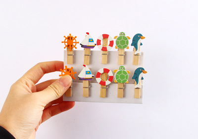 Small wholesale/Creative cartoon clips/book clips message clips photo clips small wooden clips 10-pack Dolphin