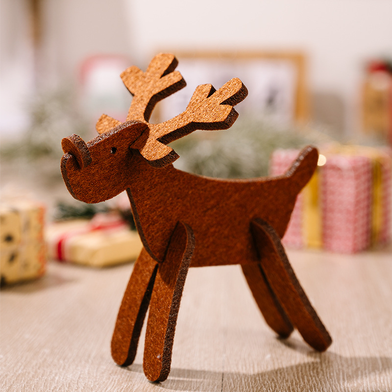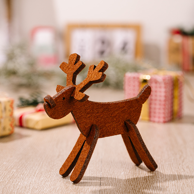 Haobei Cross-Border New Christmas Decorations: Non-Woven Fabric Elk Ornaments in Red—DIY Little Deer with Antler Decorations