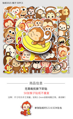 50 monkey doodle personalized cartoon cross-border animal children DIY skateboard phone case luggage sticker waterproof
