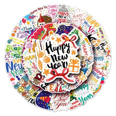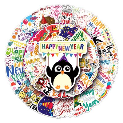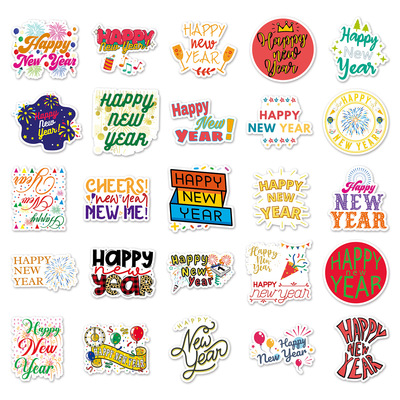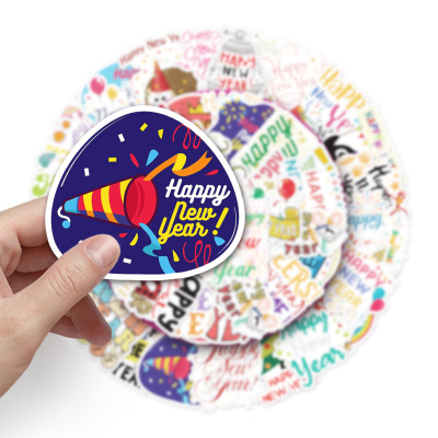 50 New Year Happy Doodle Personalized Cross-border Festival English Gukka DIY Skateboard Phone Case Luggage Sticker