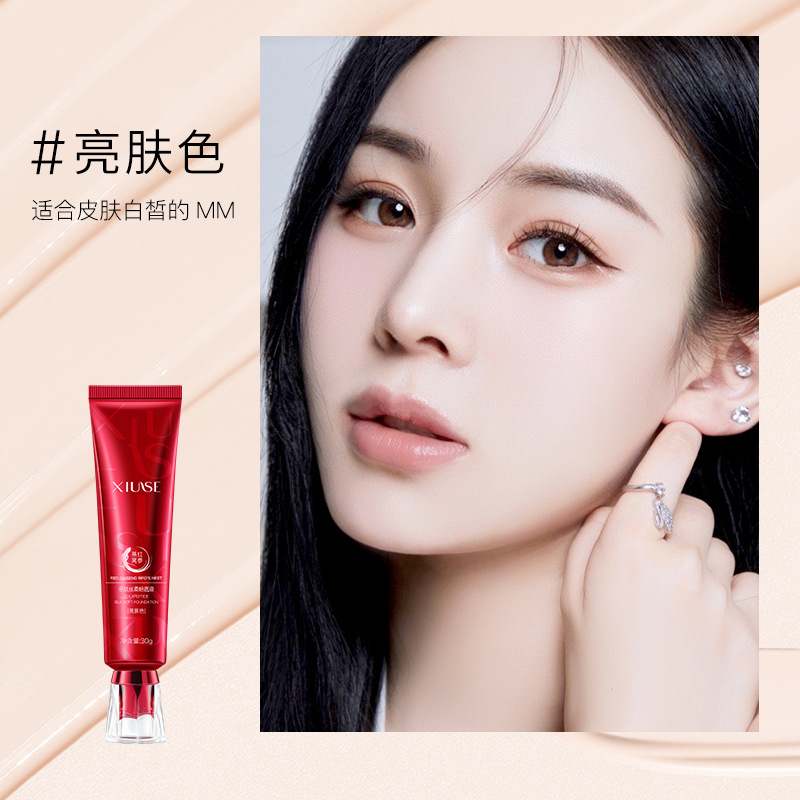 Xiuse Red Ginseng and Bird's Nest Polypeptide Silky Soft Liquid Foundation Tube, Delicate and Silky Concealer, Natural Base Makeup, Light and Long-lasting