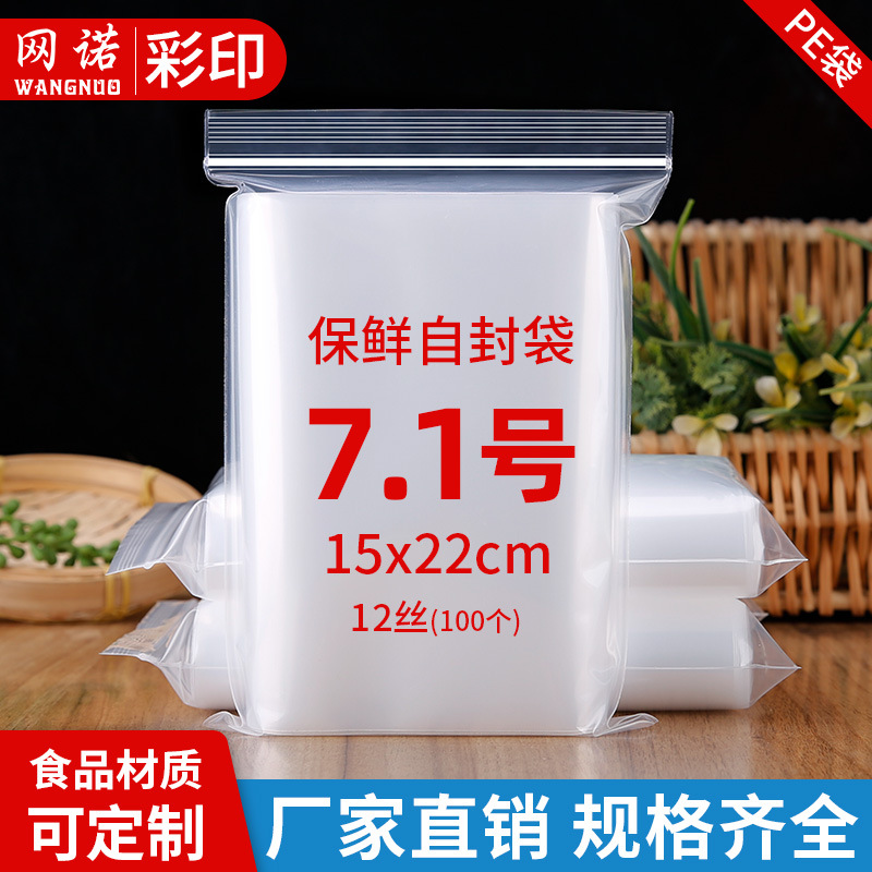 網諾牌7號15*22*12絲加厚PE自封袋家用塑封口食品包裝塑料袋批發