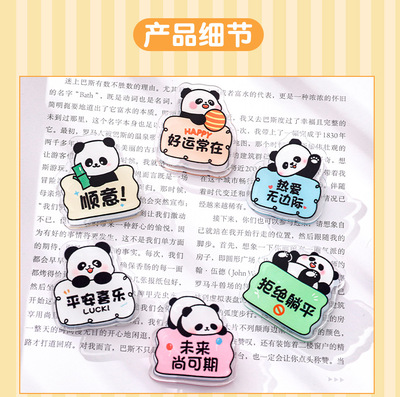 Cartoon Panda Double-sided Clip Student Cute Sticky Note Clip Acrylic Exam Paper Storage Clip Notebook Decoration Clip