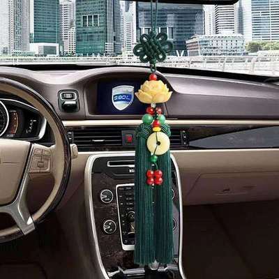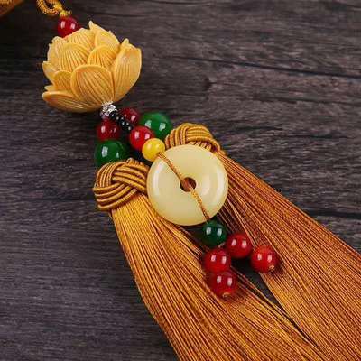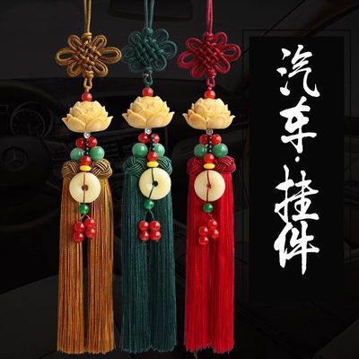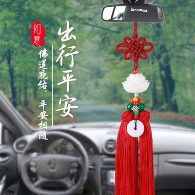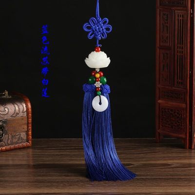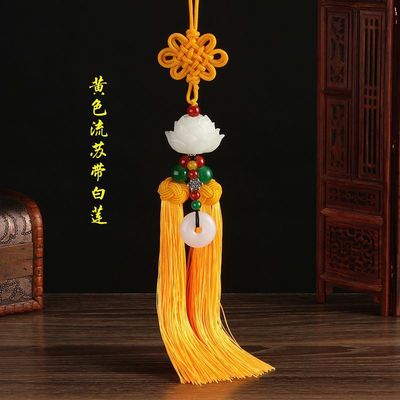New car pendant imitation white jade lotus car rearview mirror pendant security charm Chinese knot tassel decoration