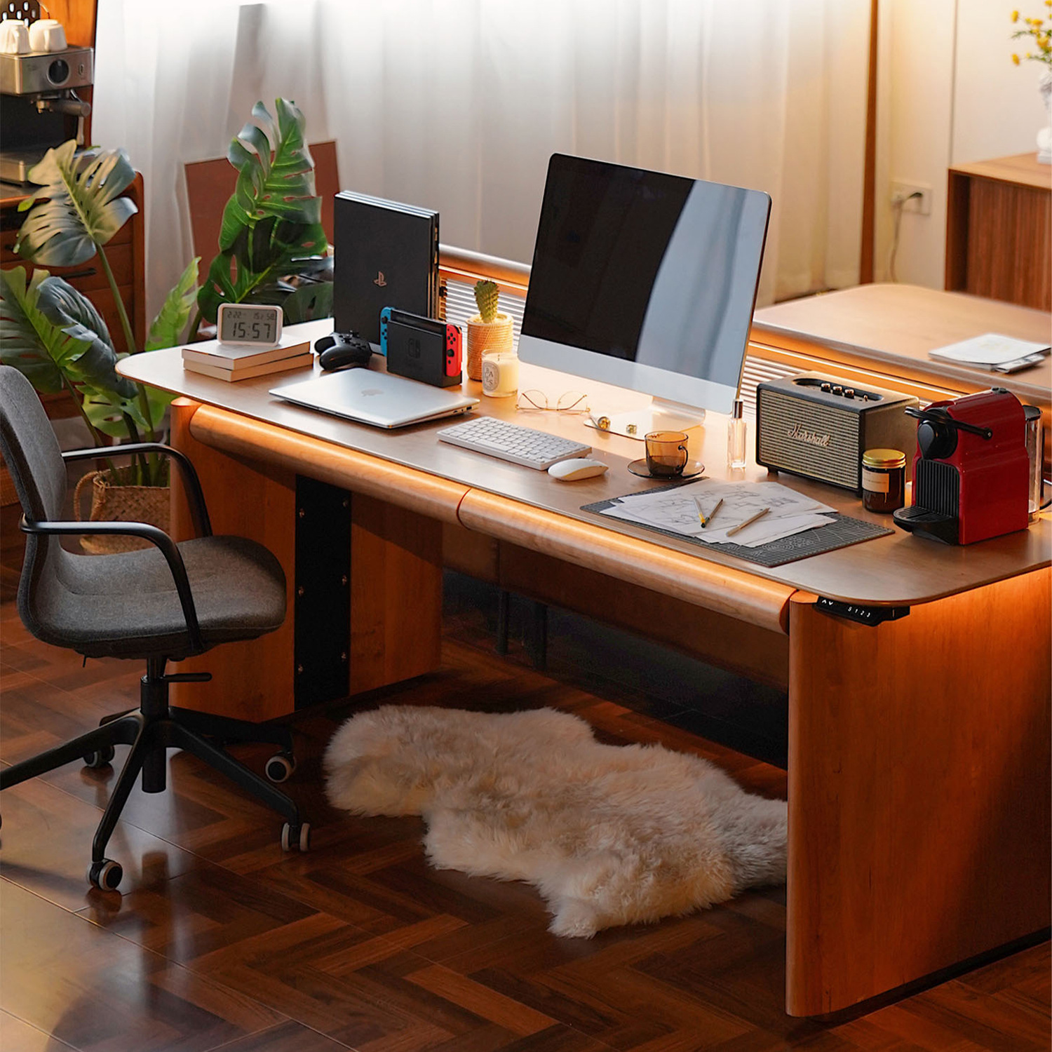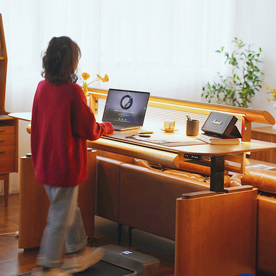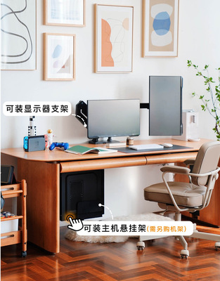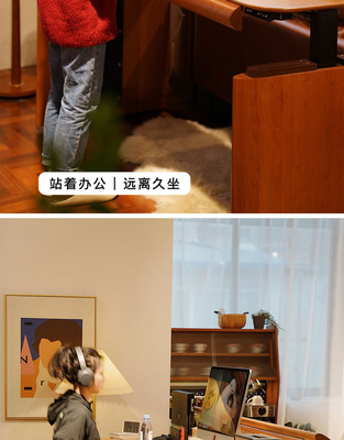 Moonlight lifting table cherry solid wood home desk long desk electric computer table living room workbench table