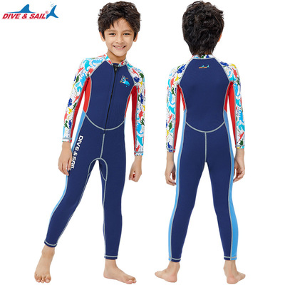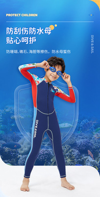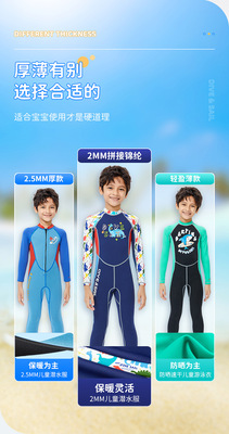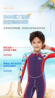 New 2MM children's wetsuit, men's and large children's warm swimsuit one-piece long-sleeved sun protection snorkeling surfing jellyfish suit