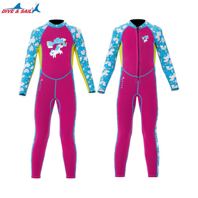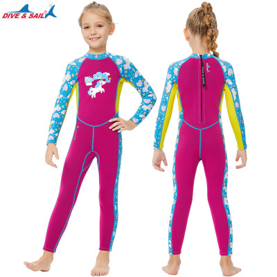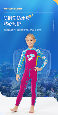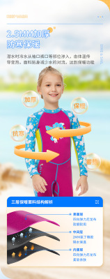 New children's wetsuit female 2.5MM thickened warm children's swimsuit one-piece long-sleeved sun protection snorkeling surfing suit