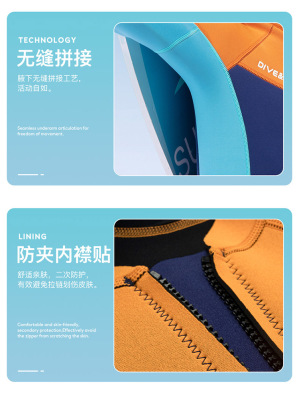 2.5MM children's wetsuit one-piece long-sleeved wetsuit to prevent cold and keep warm for middle-aged and older children snorkeling and surfing constant temperature swimsuit
