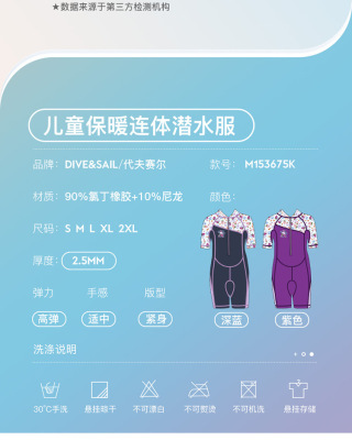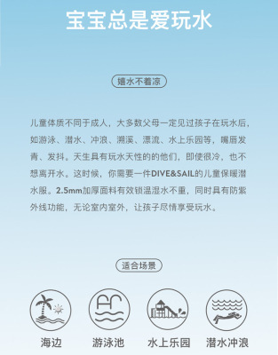 DIVE&SAIL Kids 2.5MM One-piece Short-sleeve Wetsuit for Diving, Snorkeling, Surfing, Winter Swimming - Warm and Insulated