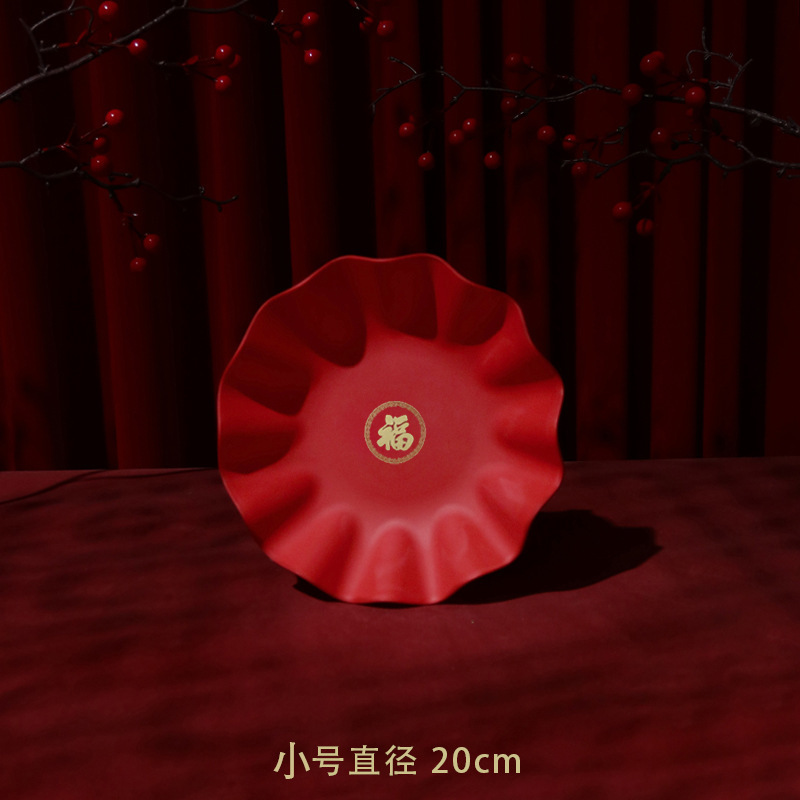 Edge Fruit Plate with Fortune Character - Small Size 20cm