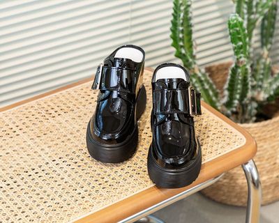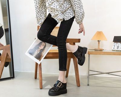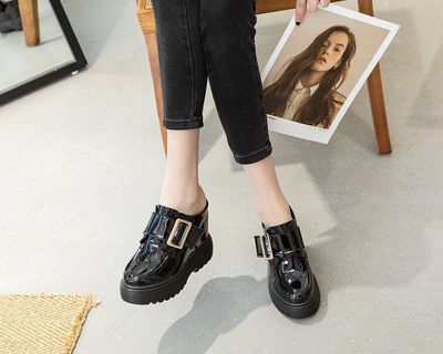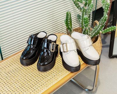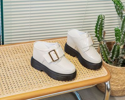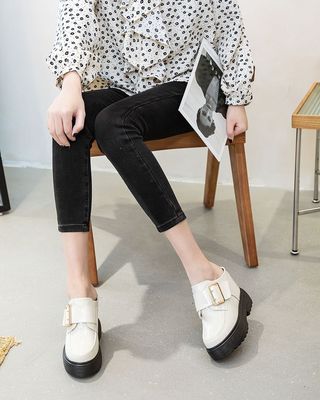 Thick sole loafers with mirror leather white women's shoes 2024 spring new style insole height slippers casual Korean version versatile