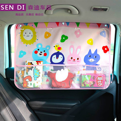 New cartoon-style car extendable suction cup sunshade with mesh bag, side window multifunctional sunshade curtain
