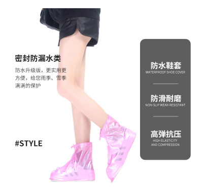 Shoe covers waterproof thickened wear-resistant transparent disposable outdoor non-slip rain boots factory snowy men and women high-top rainproof shoe covers