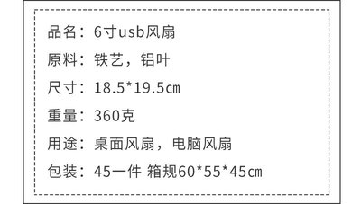 6-inch USB desktop fan with iron frame and aluminum blades, summer employee gift office desk fan