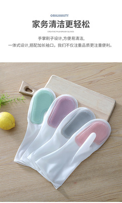 Multifunctional Magic Brush Housework Dishwashing Gloves Plastic Latex Waterproof Kitchen Cleaning Household Laundry and Dishwashing Gloves for Women