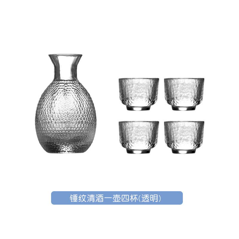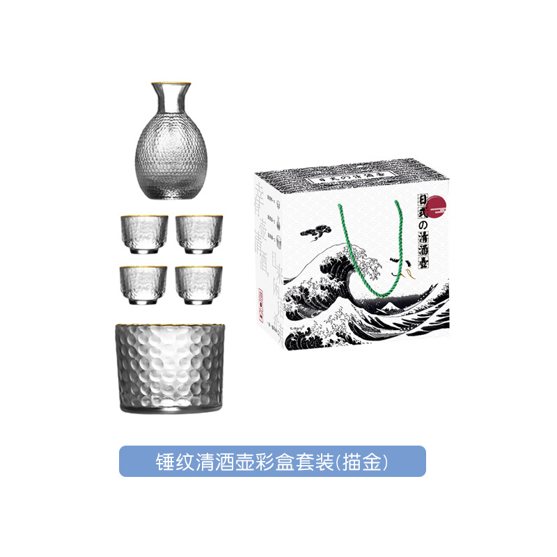 Japanese sake pot, sake cup, gold hammered glass wine dispenser, white wine cup, hot pot, wine warmer, wine set