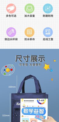 Student tutoring bag Primary school student large-capacity tutoring bag canvas portable cartoon Korean version storage waterproof hand bag