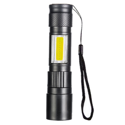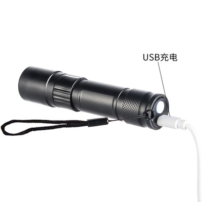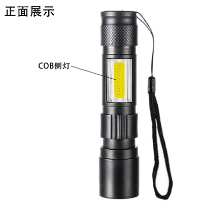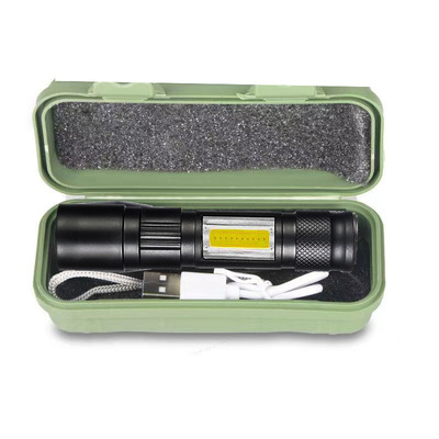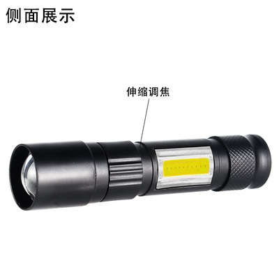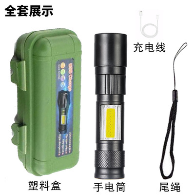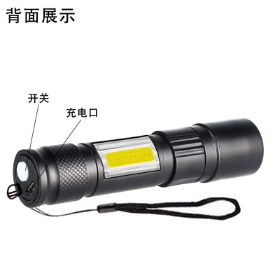 Cross-border LED small flashlight with side light COB strong light telescopic zoom USB charging set household mini flashlight