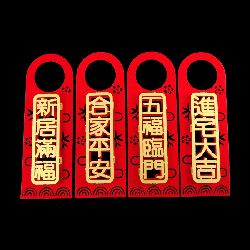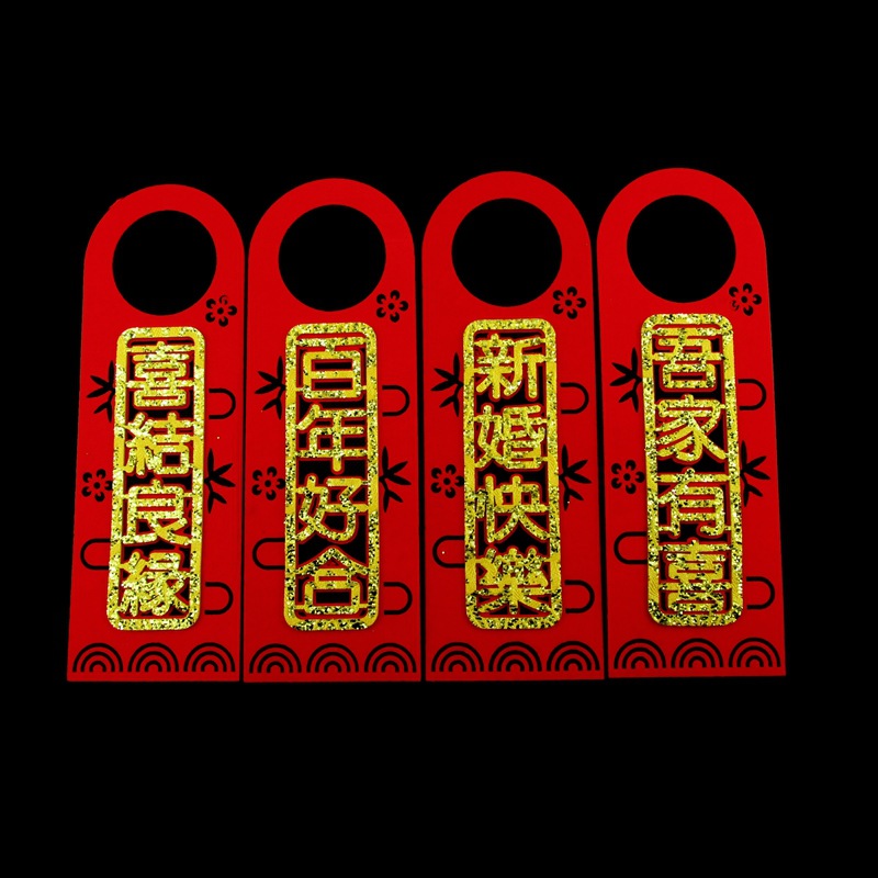 Moving In Good Fortune Door Handle Ornament, New Home Entry Wedding Room Double Happiness Door Lock Decoration, Enter with Good Luck Door Sticker