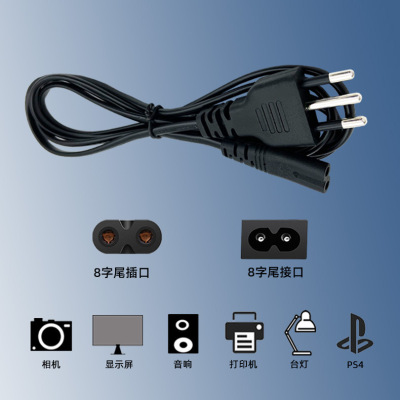 Manufacturer Italian plug AC power cord IMQ figure-eight tail power cord two-core 8-figure tail Italian power cord