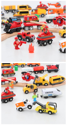 Wooden track electric train fire scene rescue road rescue scene compatible with Thomas Car track