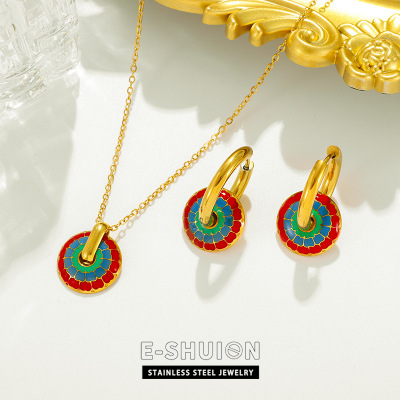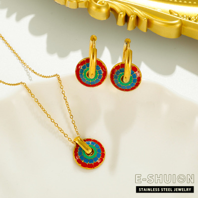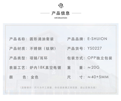 Circular Oil Droplet Set Cross-Border Wholesale European and American Fashion Light Luxury Style Titanium Steel Material Non-Fading Necklace Earrings for Women