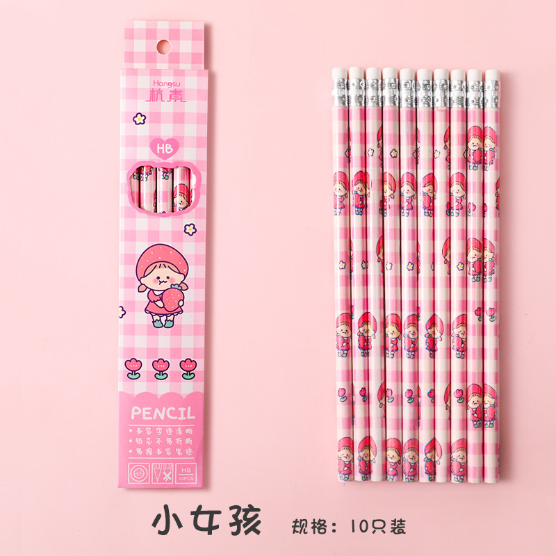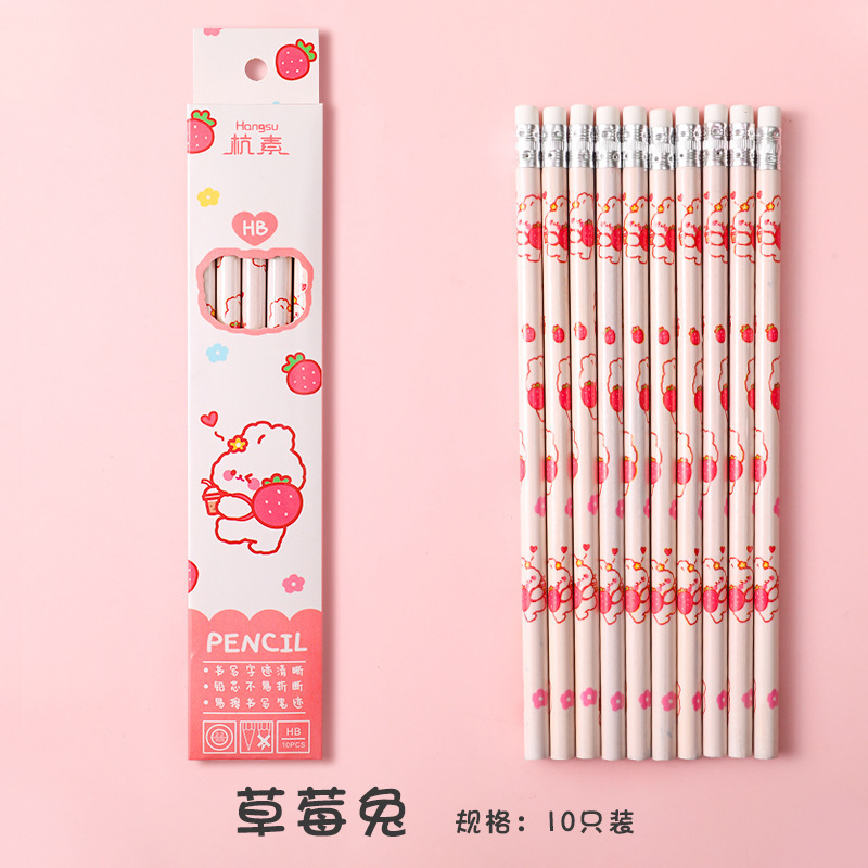 Elementary school student pencil 10 pieces stationery set writing painting sketch pen student stationery HB pencil with eraser wholesale