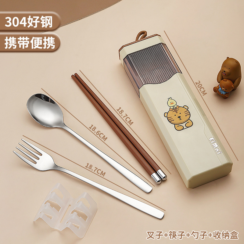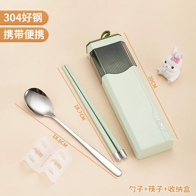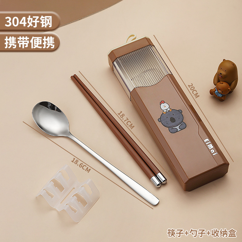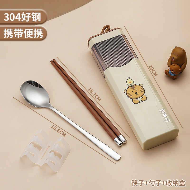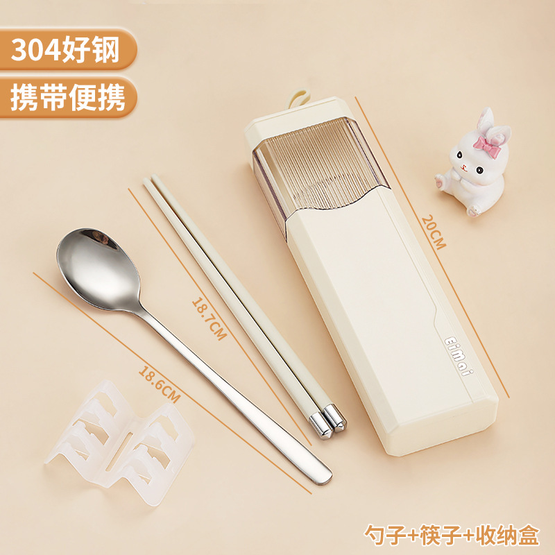 Stainless steel chopsticks and spoon set portable tableware for one person, three-piece set for primary school students, special storage box for school