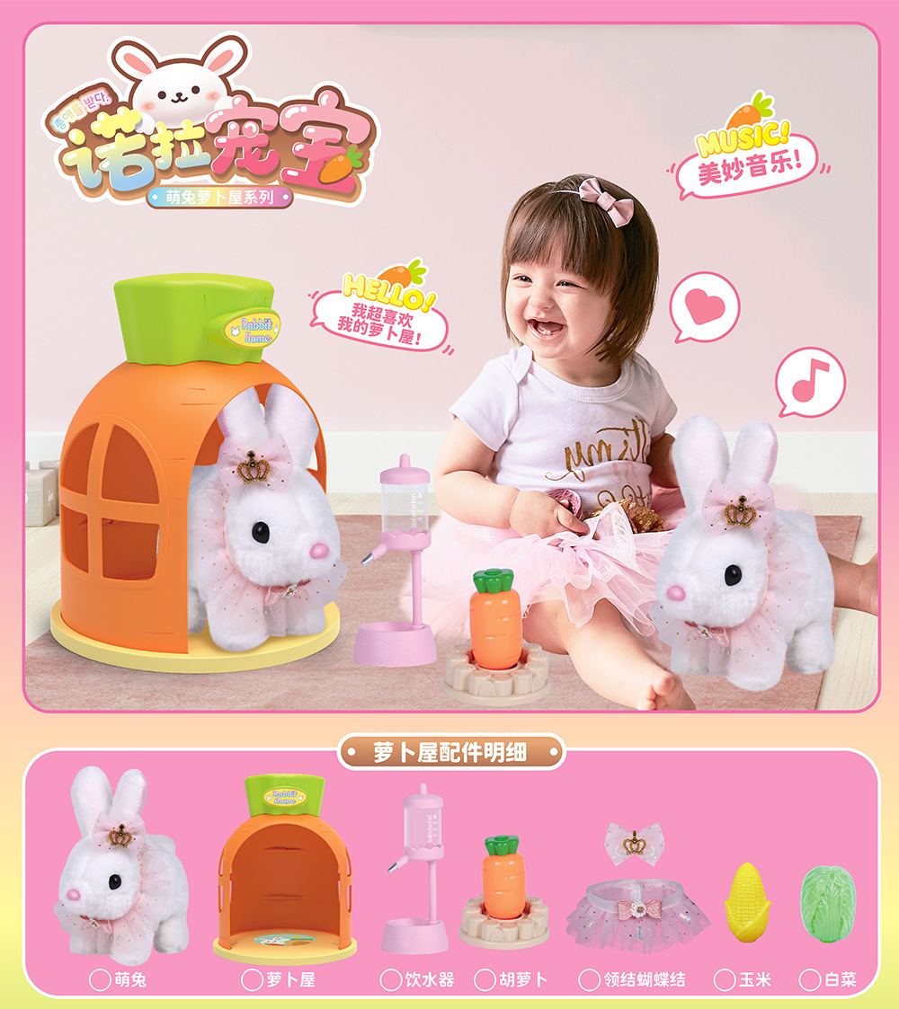 諾拉寵寶拉比兔鞦韆背包萌小兔電動毛絨動物寵物養成屋過家家玩具